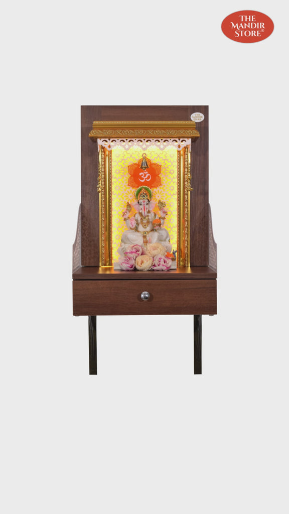 Wooden Mandir with Pocket Doors, Home Temple 5 Feet, Mandir for Home, Extended Storage, LED Lighting