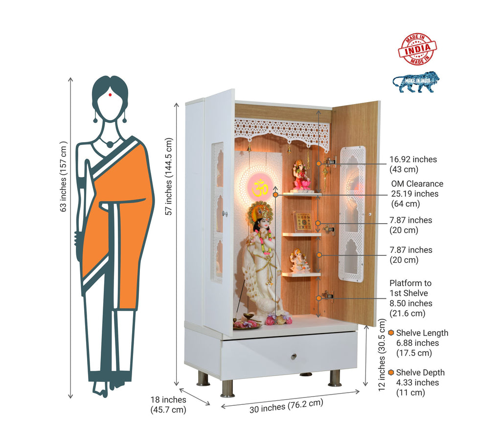 Storage Solutions: Comes with a spacious drawer with covering tray, providing ample storage space for your prayer essentials like incense sticks, diya stands, and holy books. Keeps your worship area organized and clutter-free.